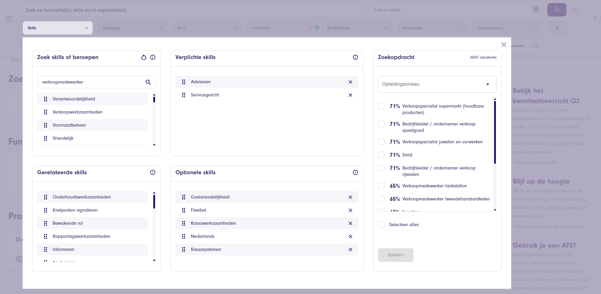 Match vacatures en functies nog beter op basis van vaardigheden en ontdek sneller de juiste kansen. Of je nu kandidaten begeleidt, of bezig bent met sales. De Skillsfilter ondersteunt je hierbij.