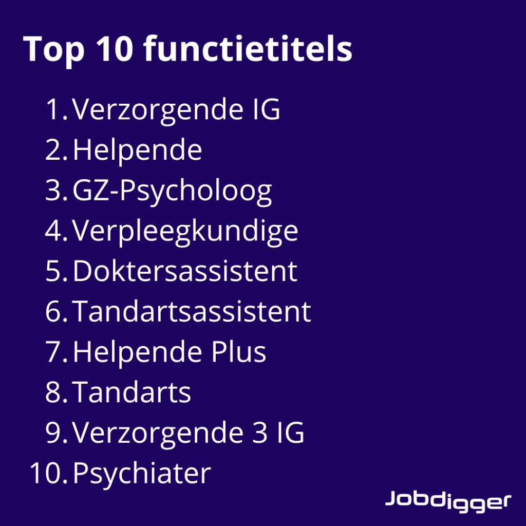 Naar welke functietitels is per branche de meeste vraag? In de technieksector zien we de functietitel monteur meerdere keren terugkomen. In de zorg is er vaker vraag naar verzorgenden, helpenden en assistenten.
