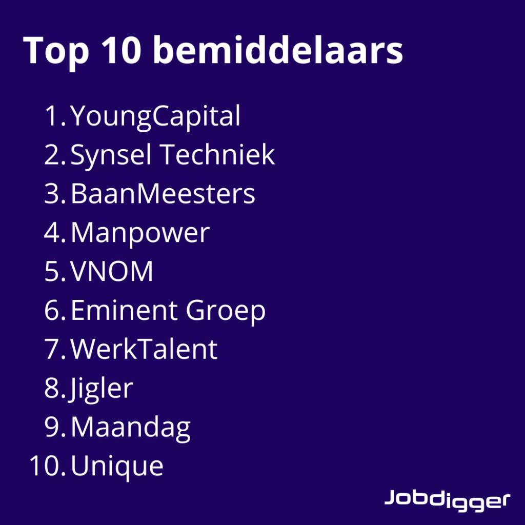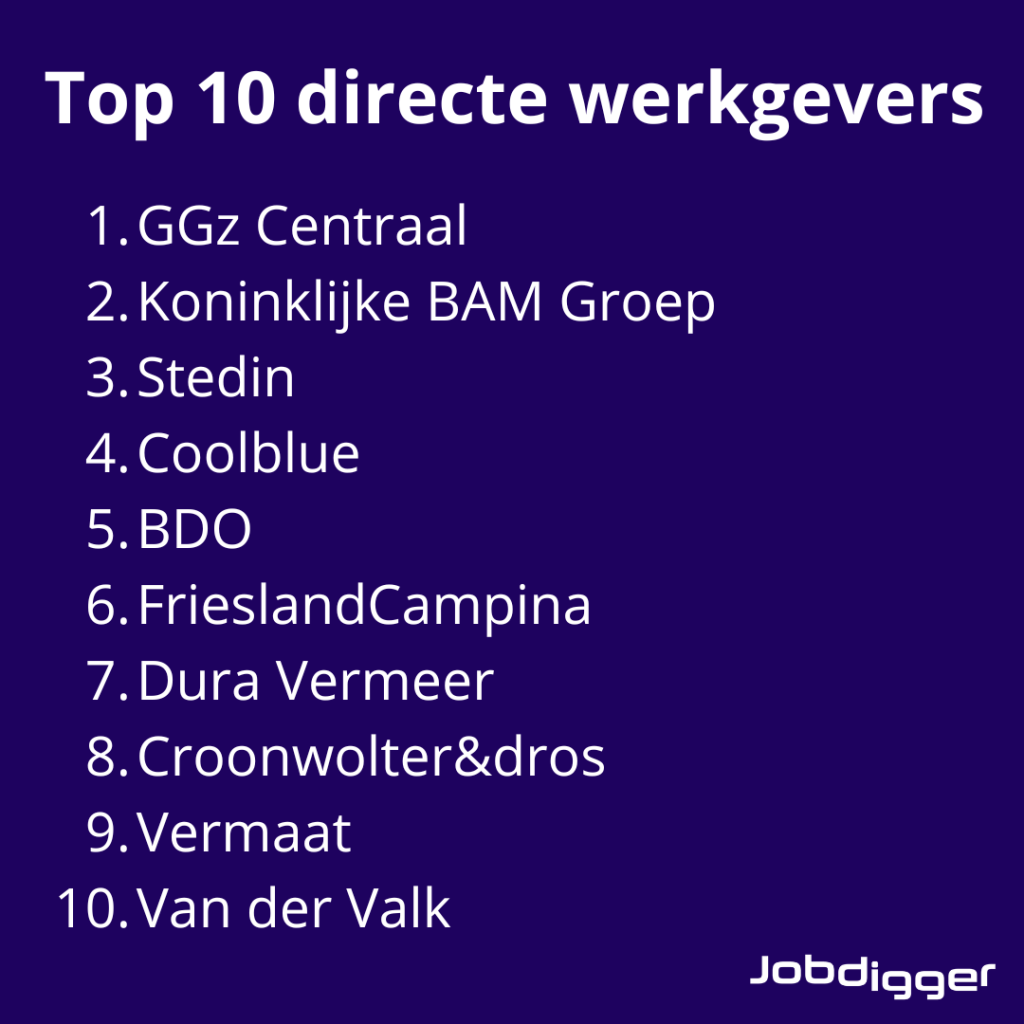We kijken vanaf nu weer naar alle juniorfuncties. Welke directe werkgevers en bemiddelaars hebben voor deze doelgroep vacatures uitstaan? We zien dat er werkgevers tussen staan uit verschillende branches, zoals de bouw, horeca en zorg.