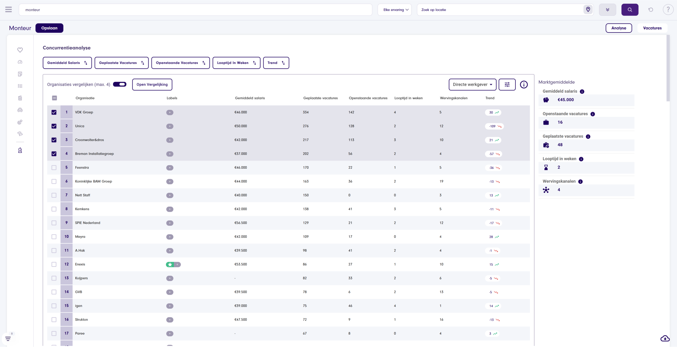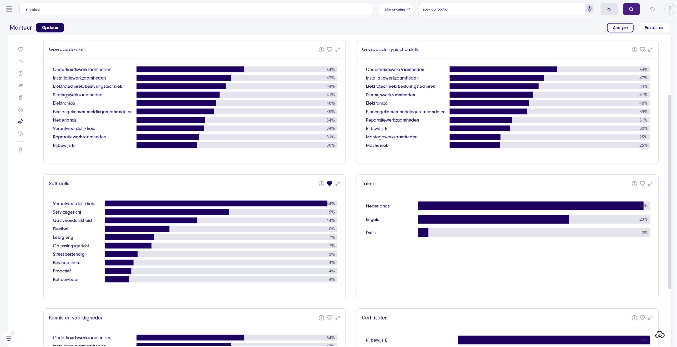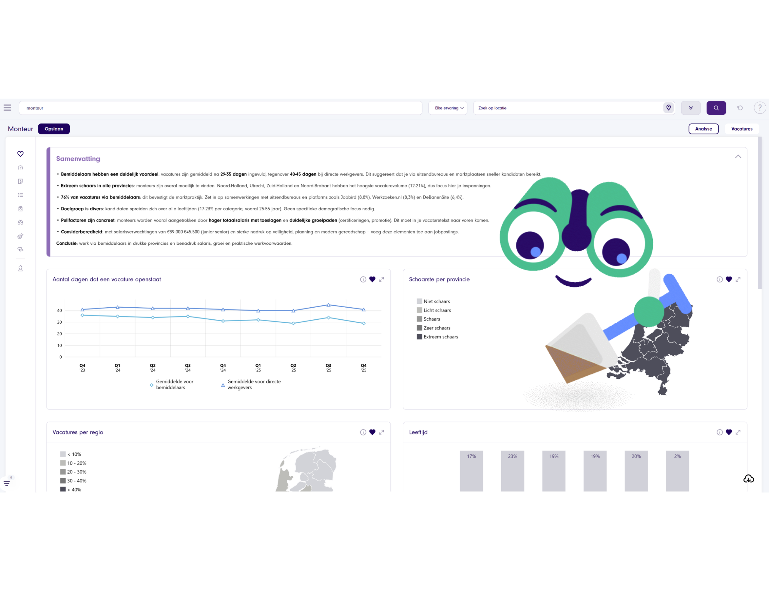 Ontdek hoe jouw doelgroep er uitziet, wat hun wensen zijn en waar je ze kunt bereiken. Optimaliseer wervingscampagnes aan de hand van realtime, betrouwbare arbeidsmarktdata. Krijg daarnaast inzicht in gevraagde skills per beroep en voer uitgebreide concurrentieanalyses uit. Of je nu recruiter, marketeer of data-analist bent: Talent Insights is breed inzetbaar en helpt jou bij het sneller bereiken van je doelen.