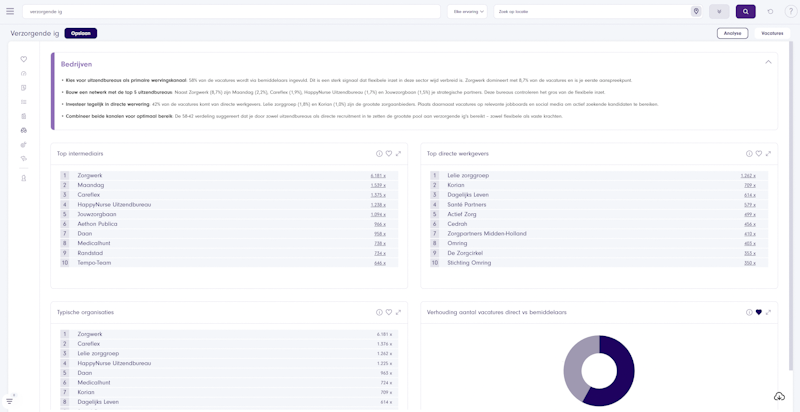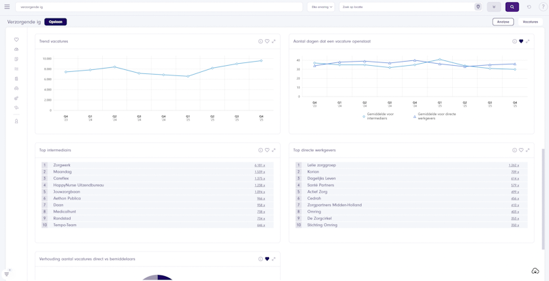 Ontdek hoeveel vacatures er gepubliceerd zijn binnen jouw branche, waar deze vacatures uitstaan en hoe de trendlijn er uitziet.