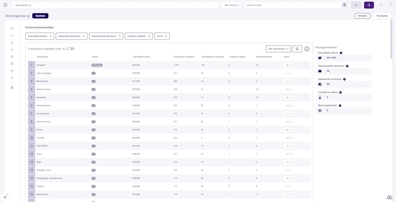Maak gebruik van onze concurrentieanalyse om andere bedrijven met elkaar of jezelf te vergelijken. Krijg snel inzicht in welke vacatures deze bedrijven uit hebben staan en welk salaris zij gemiddeld bieden.
